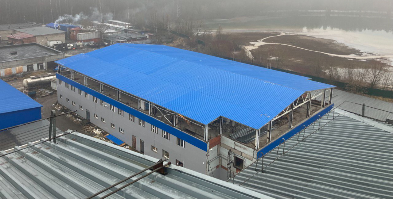Реконструкция здания советской постройки с устройством кровли из металлоконструкций и сэндвич-панелей.
